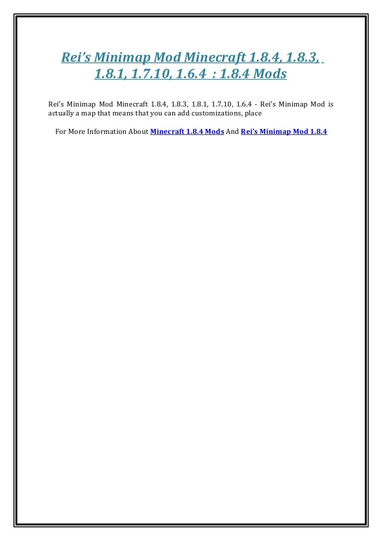 Introduction and Features Rei’s Minimap ModThe latest version of Rei’s Minimap will support versions 181 and 1710/172 and is one of the most dynamic Minecraft 18 Mods. I've updated the liteloader mods list entry for VoxelMap to point to this thread, at the moment I've left the direct link to the 1710 litemod on the page because the 1710 version isn't on curseforge, although I've noticed that this has confused some people so it might be a good plan to stick the 1710 download on curseforge as well, then I. Mod Rei`s Minimap works only with Minecraft versions from 15 to 1710 For versions 18 and older, use VoxelMap How to install Rei`s Minimap Mod mod Make sure you have installed Minecraft Forge Download the mod for your version of the game Put it in the ‘mods’ folder, which is located in the game folder.