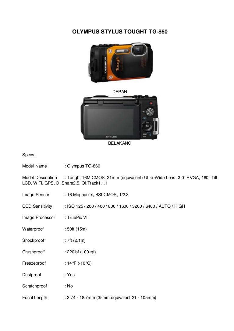 Olympus Stylus Tough TG-860 hands-on | 15 Photos 15 +11 The TG-860, which succeeds last year's TG-850, is waterproof (up to 50 feet) and shockproof (up to seven feet), but those aren't. Camera Only, Digital Zoom:. Olympus TOUGH TG860 vs TOUGH TG4 vs Nikon COOLPIX AW130 quality results.